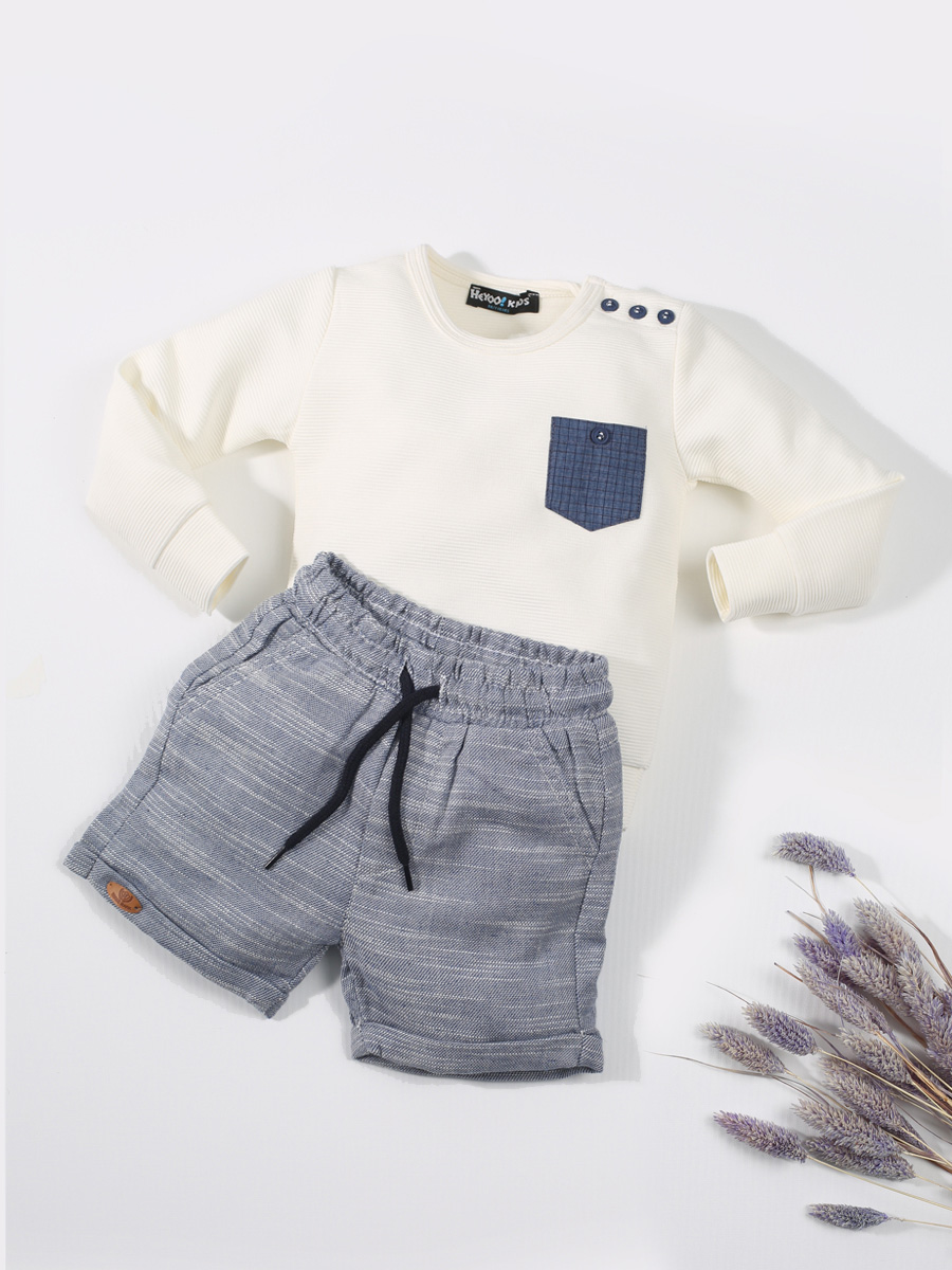 - Kırık beyaz sweatshirt mavi cep detaylı